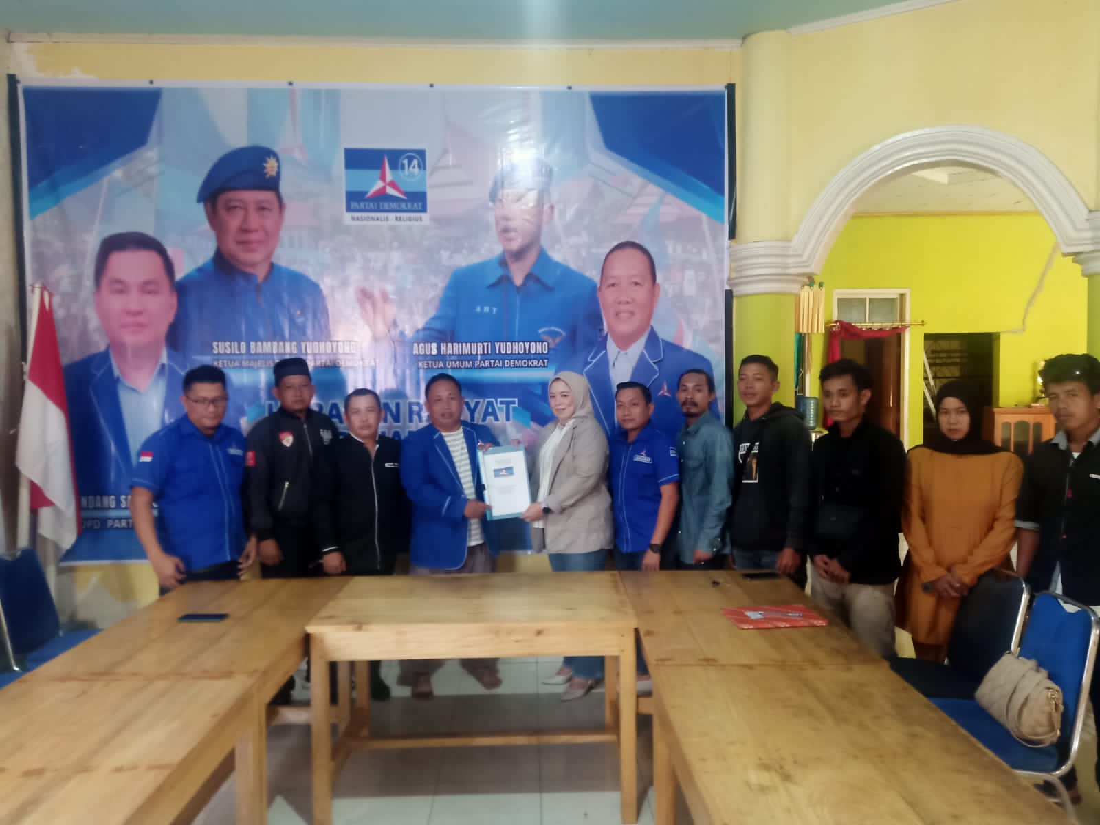 Anyta bersama Waktu Ketua Tim Relawan, Ikbal Ruslan Konggoasa dan para relawan mengambil formulir di Partai Demokrat Kolaka.