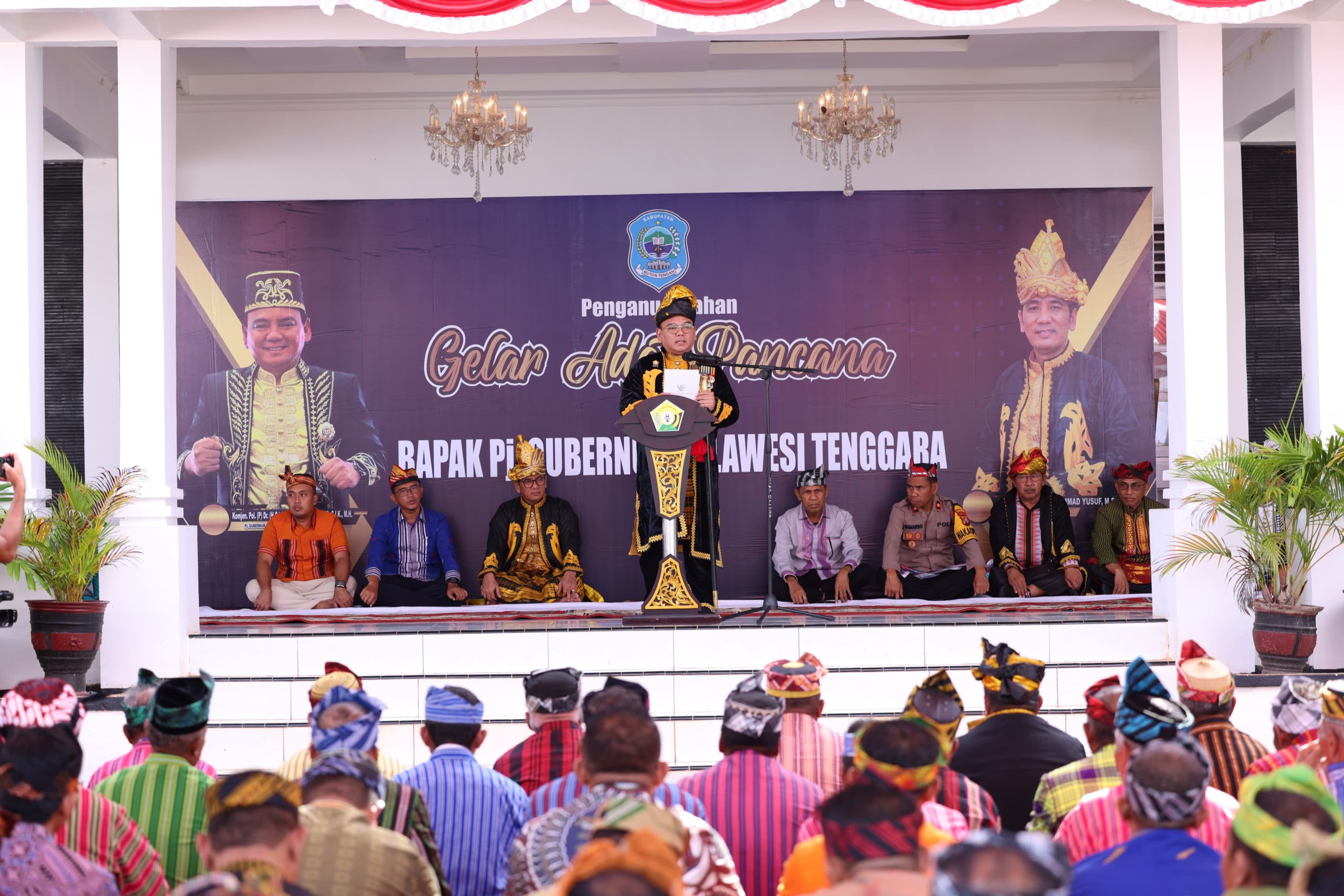 BUTON TENGAH, LINKSULTRA.COM – Pj. Gubernur Sulawesi Tenggara (Sultra), Komjen Pol (P) Dr. (H.C.) Andap Budhi Revianto, dianugerahi gelar adat “Kolakino Liwu Pancana” oleh Lembaga Adat Buton Tengah. Gelar ini mengandung pengertian “Bangsawan yang paling dimuliakan di Negeri Pancana”.