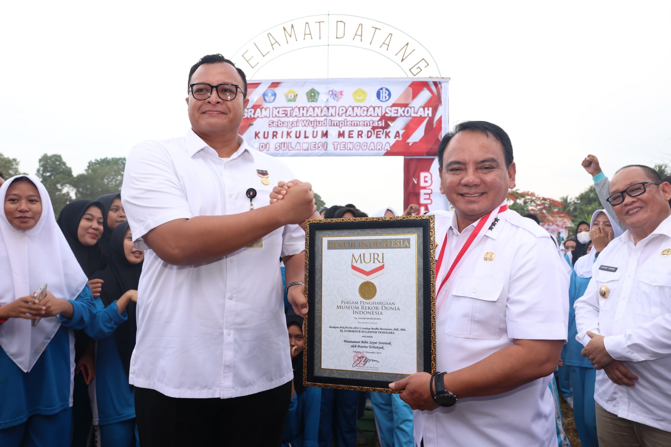 Ternyata, kegiatan penanaman ini mendapat apresiasi dari Museum Rekor-Dunia Indonesia (Muri), hal ini ditandai dengan penganugerahan piagam penghargaan kepada Pj Gubernur Sultra, Andap Budhi Revianto atas rekor “Penggagas Penanaman Bibit Sayur Serentak oleh Peserta Terbanyak”